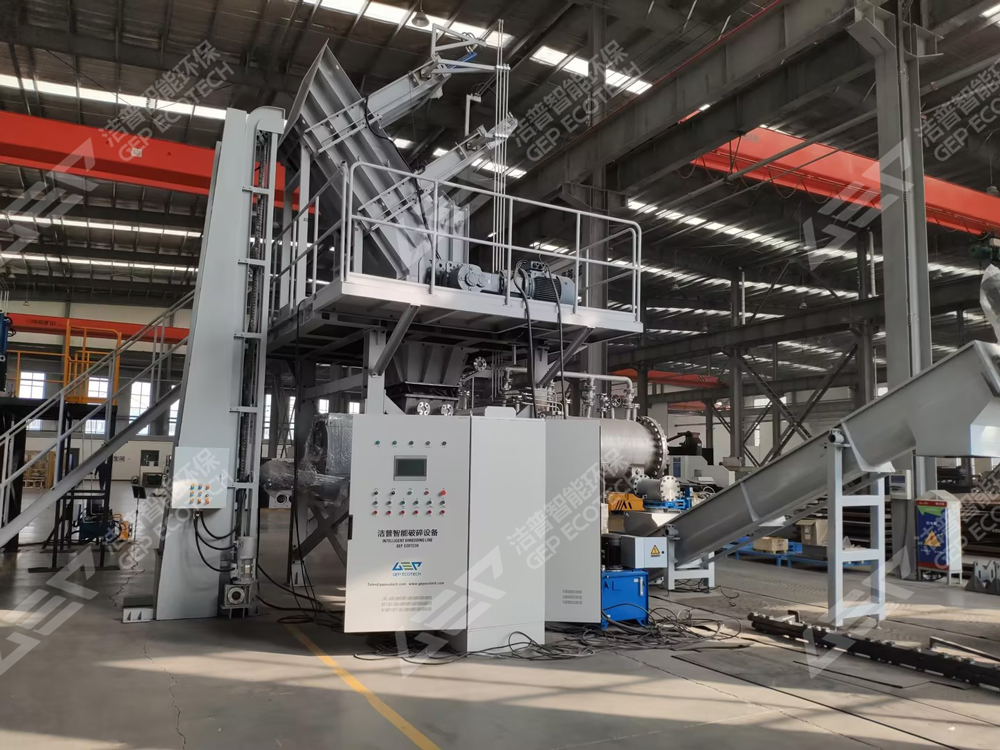 在这场废旧电池资源化的变革中,安全可靠的预破碎环节成为整个回收链条首先要面临的问题,而撕碎机,作为打开这座“城市矿山”的第一把钥匙,其技术的每一次革新,都决定着整个回收产业的效率与安全。洁普智能环保从事固废资源化设备研发生产多年,针对废旧电池等危险废弃物的破碎预处理,推出了塔楼式危废资源化处置方案,在废旧电池的预破碎处理中主要有以下优势: