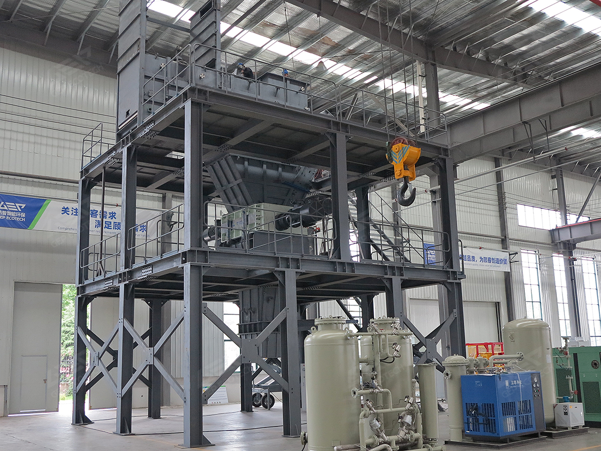 若破碎仓内意外起火,智能监测系统会立即报警,设备自动停机,密封舱上下防火门迅速关闭,隔绝空气进入。同时,二氧化碳灭火系统自动开启,对起火点精准灭火。系统支持CO₂、干粉、N₂、高压蒸汽等多种灭火介质,可根据危废类型灵活选择。