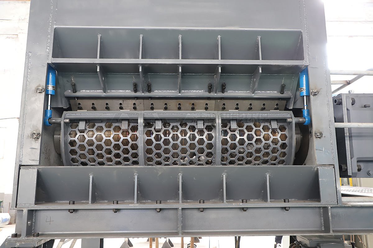 单轴细碎:对双轴粗碎后的碎片进行二次细化,通过调节筛网孔径(如文中 50-100mm 可调),确保出料粒度均匀,精准适配后续清洗、造粒环节的要求,保障再生原料质量,同时单轴设备的柔性破碎特性可避免过度粉碎,减少粉尘污染与物料损耗。